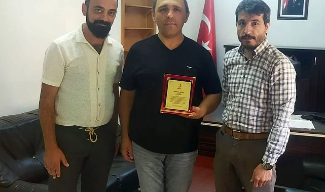 Türk Kızılayı Elazığ Şubesi tarafından, 112 tam kan bağışı yaparak Elazığ rekoru kıran Keban İlçe Emniyet Müdürü Mustafa Ateş'e teşekkür plaketi verildi.