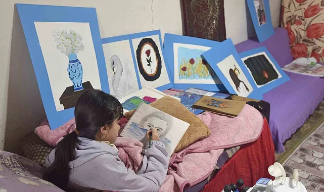 Bitlis'in Ahlat ilçesinde yaşayan yürüme engelli Zehra Gelmez, resim yaparak hayata tutunuyor.