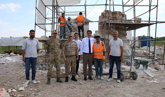 Erciş Kaymakamı Murat Karaloğlu, beraberindeki heyetle çalışmaların devam ettiği Kara Yusuf Paşa (Zortul) Kümbeti'nde incelemelerde bulunarak, çalışmalar hakkında bilgi aldı.