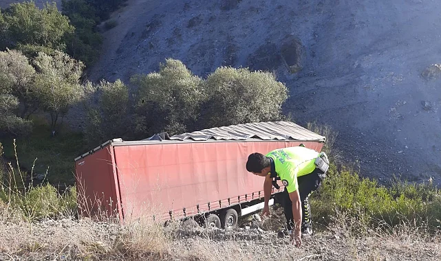 Erzincan'ın Tercan ilçesinde meydana gelen trafik kazasında tır şarampole uçtu. Sürücü yaralandı.