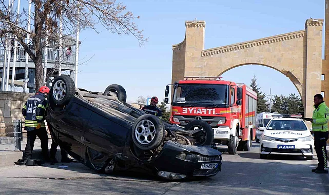 Atatürk Üniversitesi kampüsü girişinde meydana gelen kazada 25 ADH 744 plakalı araç sürücüsü A.A. direksiyon hakimiyetini kaybetmesi sonucu kaldırıma çarptı. Çarpma sonucu araç takla attı, sürücü kazada yara almadan kurtuldu. Takla atan aracın bir süre yolda sürüklendi. İhbar üzerine olay yerine polis, itfaiye ve 112 ekipleri geldi. Kazadan dolayı bir süre Üniversite kampüsü girişi trafiğe kapatıldı. Güvenlik kameraları ise olayı saniye saniye kayıt altına aldı.