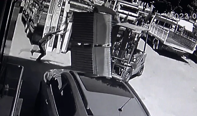 Güvenlik kameralarına yansıyan görüntülerde; baba Aleaddin Ataş'ın (51) kullandığı forkliftte bulunan ve kamyona yüklenmek istenen laminantların bir anda devrilmesiyle yüklerin altında kalan 14 yaşındaki Ahmet Ataş hayatını kaybetti.