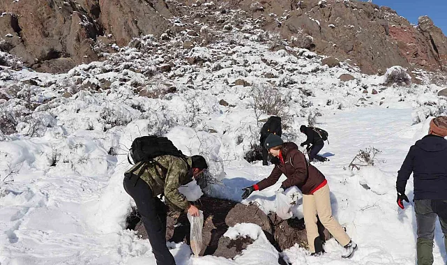 Erzurum'un Oltu ilçesinde soğuk havada aç kalan keklikler için doğaya yem bırakan doğaseverler avcıları da fırsatçılık yapmamaya davet etti.