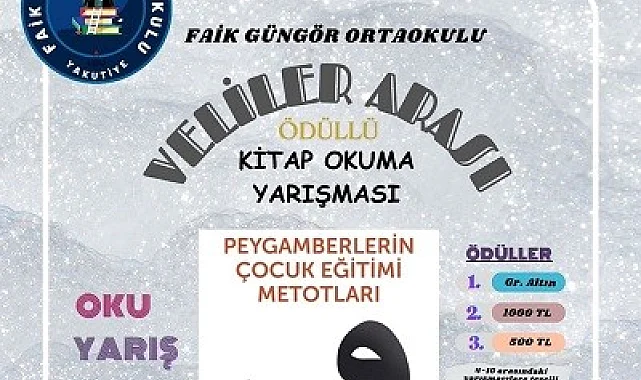 Erzurum Yakutiye İlçe Milli Eğitim Müdürlüğüne bağlı Faik Güngör Ortaokulu, öğrencilerin velileriyle beraber katılacağı ödüllü kitap okuma yarışması düzenleyecek.