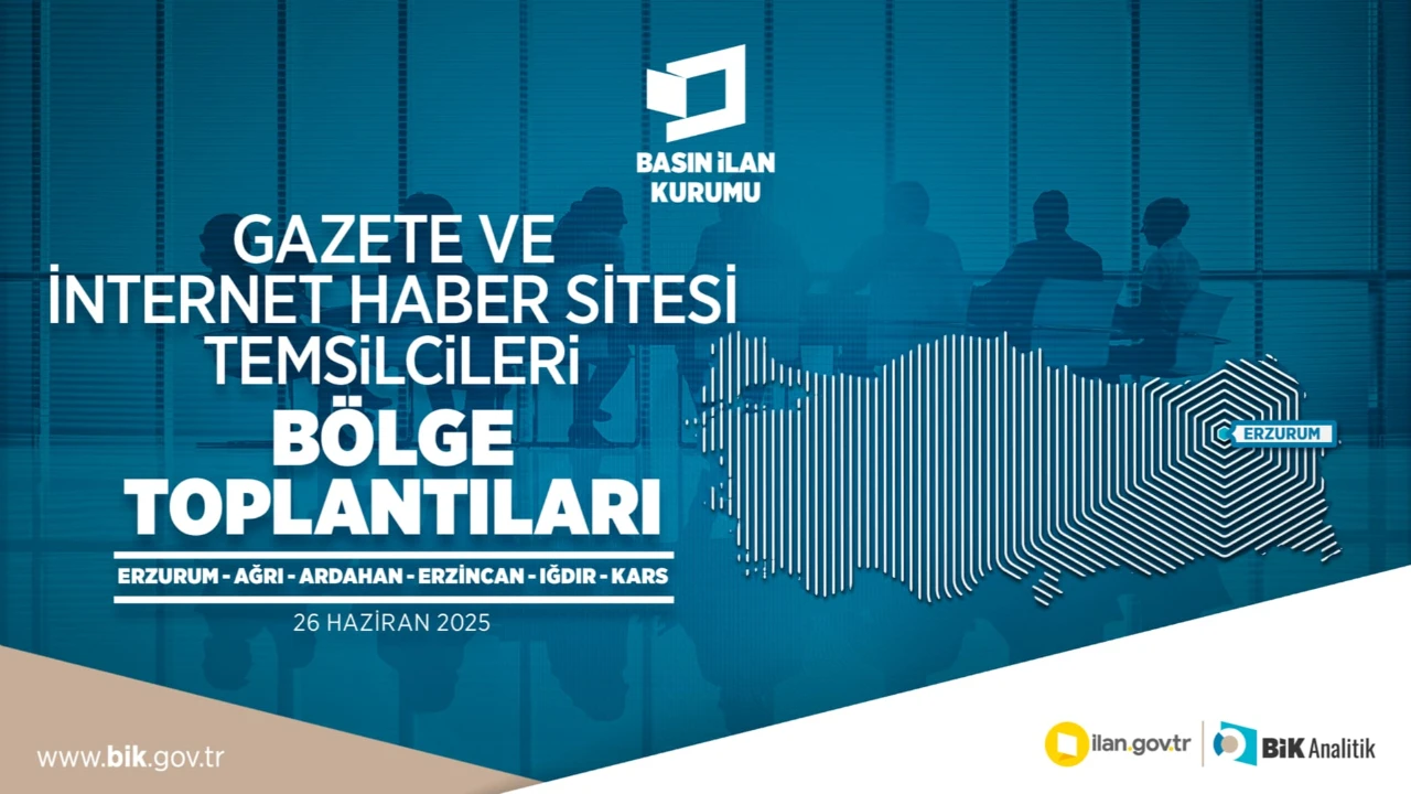 Basın İlan Kurumu (BİK) tarafından düzenlenen “Gazete ve İnternet Haber Siteleri Temsilcileri Bölge Toplantısı”, 26 Haziran Perşembe günü Saat 14.00’te Erzurum’daki Atatürk Üniversitesi Nene Hatun Kültür Merkezi’nde gerçekleştirilecek.