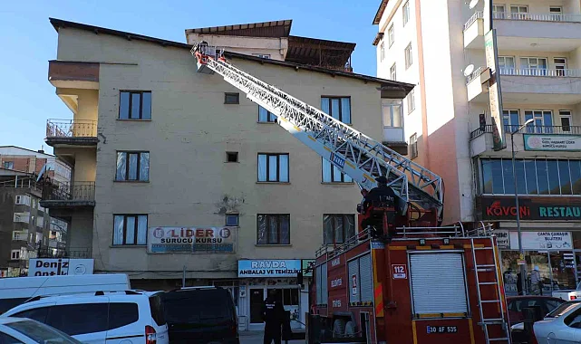 Hakkari'de yoğun kar yağışının ardından çatılarda oluşan kar kütlesi ve buz sarkıtları itfaiye ekipleri tarafından temizleniyor.