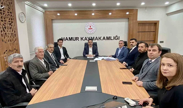 Hamur Kaymakamı Ali Yıldırım, kış mevsimi dolayısıyla alınması gereken tedbirler, Sosyal Yardımlaşma ve Dayanışma Vakfı Mütevelli Heyeti ve taşımalı eğitim yapan servis şoförleri ile ilgili toplantılar düzenledi.