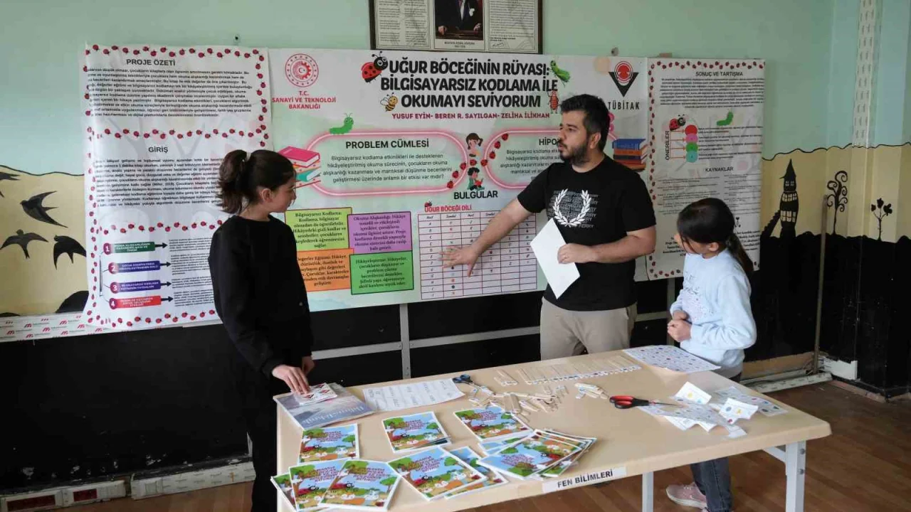 Hasköy Fatih Sultan Mehmet İmam Hatip Ortaokulu Türkçe Öğretmeni ve proje danışmanı Uğur Kodaş ise TÜBİTAK’ta Van bölge birincisi olan "Uğur Böceğinin Rüyası: Bilgisayarsız Kodlama ile Okumayı Öğreniyorum" projesi hakkında bilgi verdi. Projeyi öğrencileriyle birlikte okul bünyesinde hazırladıklarını ifade eden Kodaş, "Amacımız, okumayı sevmeyen ya da okumaktan sıkılan öğrencilerimize, okuma sevgisini kazandıracak farklı ve eğlenceli yollar sunmaktı. Bu doğrultuda tamamen bize özgü bir dil geliştirdik. Öğrencilerimizin bu dili kullanarak okuma yapmalarını ve bu süreci keyifli hale getirmeyi istedik" dedi.