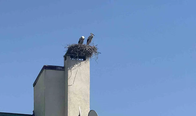 Hava sıcaklığının arttığı Iğdır'da leylekler yuvalarına geri dönmeye başladı.