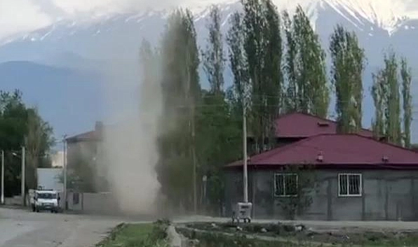 Iğdır'da bir anda oluşan küçük çaplı hortum korkuya neden oldu.