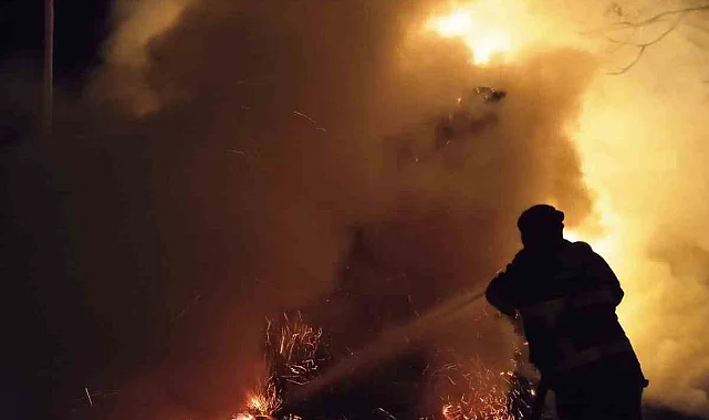 Iğdır'ın Akyumak köyünde çıkan yangında 300 balya ot yandı.