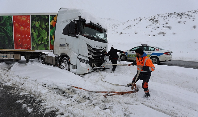 Pamuk Geçidi'nde kar ve buzlanma nedeniyle bazı tırlar yoldan çıktı. Karayolları ekiplerince iş makineleri desteğiyle araçlar mahsur kaldıkları yerden kurtarıldı.