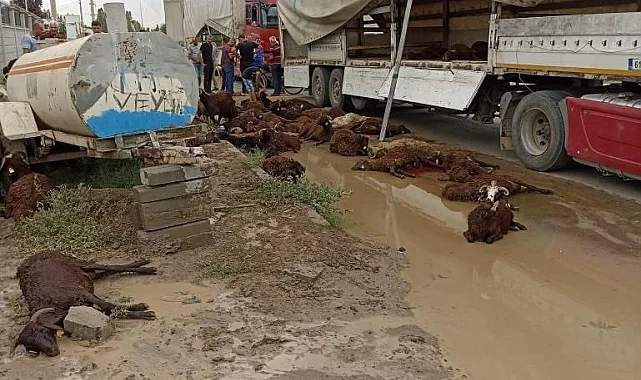 Iğdır'dan Şanlıurfa'ya satışı yapılan küçükbaş hayvanlar, sevk için gerekli olan belgelerin yapılması için yüklendiği tırda uzun süre beklediği için havasızlıktan telef oldu.