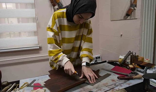 Deri atölyesinde çalışan Hatice Günay ürünlerin tamamıyla el işçiliği ile üretildiğini söyleyerek; "Iğdır Üniversitesi deri atölyesinde çalışıyorum. Burada tamamen el yapımı deriden aksesuar, çanta, kemer ve cüzdan yapıyoruz. Hiçbir şekilde makine kullanmıyoruz. Üniversitemiz bünyesinde verilen eğitimler ile sanatsal bütün ürünlerin atölyeleri var. Bunlardan biri de deri atölyesidir. Biz burada daha çok çanta, aksesuar ve kemer üzerine çalışıyoruz. Sipariş üzerine çalışıyoruz. Üniversiteye gelen sipariş ürünlerini yapıyoruz üniversite de bunları satıyor. Burada deri kabartma da yapıyoruz. Burada geleneksel motifleri biz ürünlere aktarıyoruz. Biz önce burada deriyi ıslatıyoruz. Ondan sonra geçireceğimiz deseni kesiyoruz. Daha sonra dövme kraftlarla onları kabartıyoruz. Kabartma tekniğine göre çalışıyoruz. Ayrıca gelen sipariş üzerine de çalışma yapıyoruz. Burada üretilen ürünleri hem üniversitemizin otelinin girişinde hem de çevrimiçi sayfamızda satışa sunuluyor" dedi.