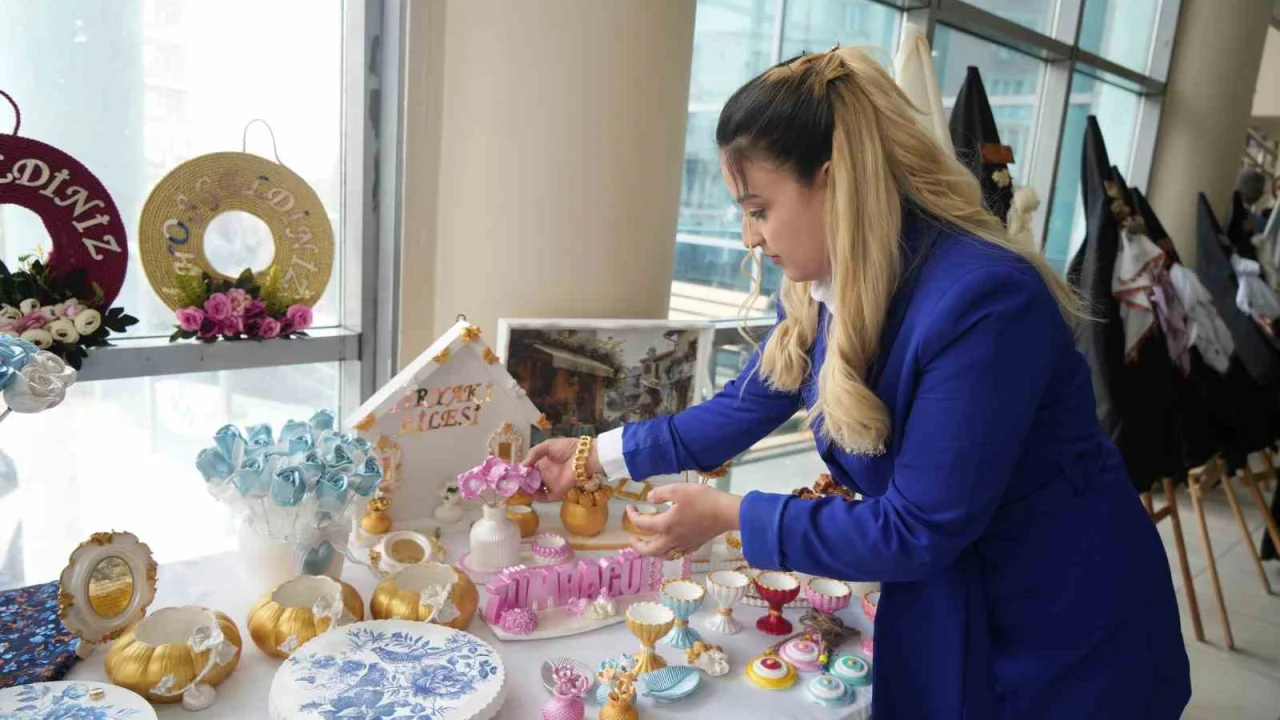 Usta öğretici Zeynep Tiryaki ürünleri kadınlar olarak büyük bir emek ile hazırladıklarını belirterek, "Bugün 8 Mart Dünya Kadınlar Günü. Hepimizin günü kutlu olsun. Ürünlerimizi kadınlarımızla birlikte büyük bir emekle hazırladık. Kadınların naifliğini, zarafetini ve emeğini yansıtan eserler ortaya çıkardık. Kokulu taş sanatıyla hazırladığımız ürünler; özel kokulu taş tozu, esans ve suyun birleşimiyle kalıplara dökülerek oluşturuluyor. Ardından boyanıp dekore edilerek son haline getiriliyor. Ürünlerimiz bu şekilde hazırlanıyor. Kadınlarımızın emeğine, ellerine sağlık. Bazı kadınlarımız bu ürünleri satarak istihdam sağlıyor. Bu sayede evlerine geçim kaynağı oluyor. Bazıları ise hediyelik olarak değerlendiriyor. Her amaca ve her alana uygun ürünlerimiz bulunuyor" dedi.
