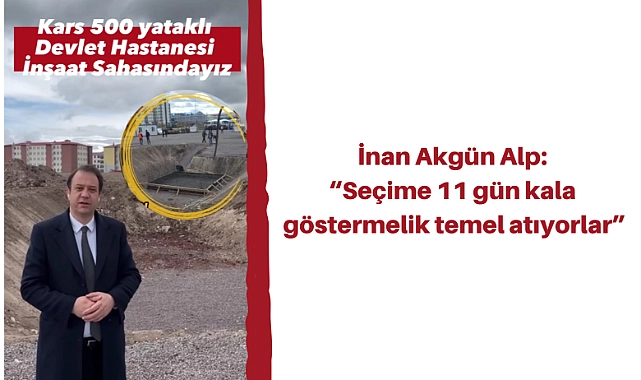 Önceki gün temel atma töreni yapılan 500 yataklı bölge hastanesi alanından video paylaşan CHP 1. Sıra Kars milletvekili adayı İnan Akgün Alp, temel atılan yerin görüntüsünü paylaşarak bunun aldatmaca olduğunu ifade etti.