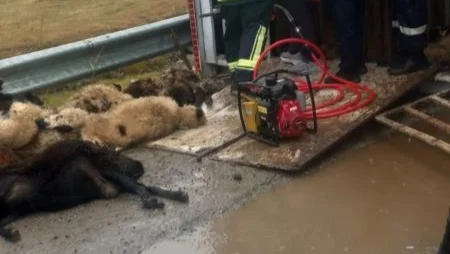 TIR’da taşınan koyun sürüsünden 2’si can verdi. Yolda çaresizce dağılan koyunların görüntüsü, kaza yerindeki dramı daha da derinleştirdi. İnsanların yanında masum hayvanların da canının yandığı bu tablo, bölgede adeta hüzün fırtınası estirdi.