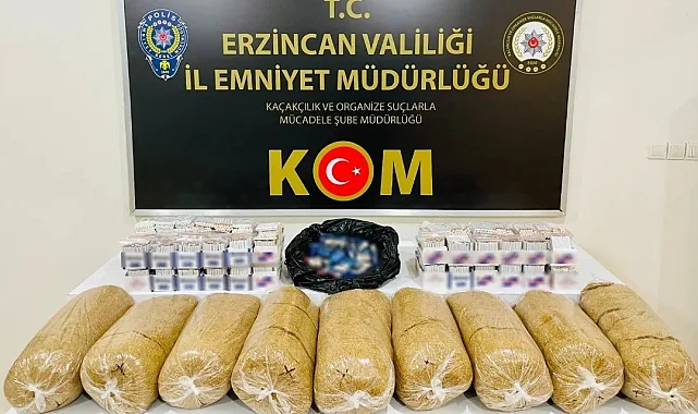 Erzincan İl Emniyet Müdürlüğü Kaçakçılık ve Organize Suçlarla Mücadele Şube Müdürlüğünce, il 5607 SKM suçunun önlenmesi, faillerin tespiti, şüphelilerin yakalanması ve suç unsurlarının ele geçirilmesi amacı ile yapılan çalışmalar sonucunda, 69 paket kaçak sigara, 6 bin 560 dal içi kıyılmış tütün doldurulmuş bandrolsüz makaron, 49 kilogram şeffaf poşetler içerisinde açık kıyılmış tütün ele geçirildi. Kaçak sigara ve tütün ile yakalanan şüpheli Ş.Y. gözaltına aldın. Emniyette ki işlemlerin ardından Ş.Y. adliyeye sevk edildi.