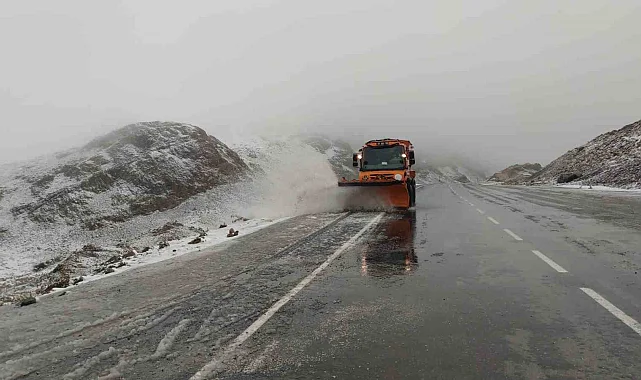 Karayolları 11. Bölge Müdürlüğü ekipleri, Van-Bahçesaray karayolu üzerinde bulunan 3 bin rakımlı Karabet Geçidi'ne kar yağmasıyla kış mesaisine erken başladı.