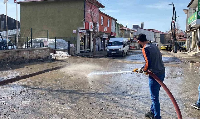 Bingöl'ün Karlıova ilçesinde, baharın yüzünü göstermesi ile birlikte belediye ekipleri sokakları yıkayarak temizledi.