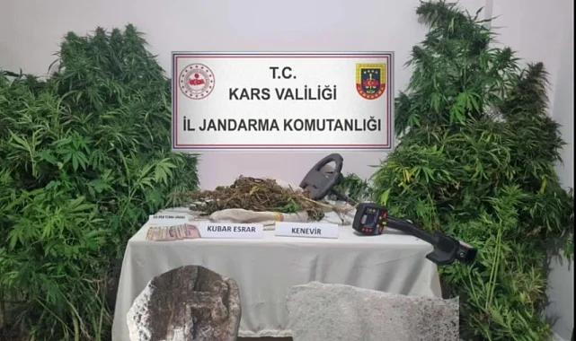 Jandarma ekiplerince yapılan ortak çalışmada, Hacıhalil köyünde ikamet eden şüpheli 1 kişinin ev ve eklentilerinde Uyuşturucu Madde Arama Köpeği Termal'in de katılımı ile arama yapıldı. Yapılan aramada 497 gram kubar esrar, 60 kök kenevir bitkisi, 10 bin 350 TL nakit para, 1 dedektör, üzerlerinde haç işareti ve eski yazılar bulunan 2 mezar taşı ele geçirilerek muhafaza altına alındı. Ayrıca jandarma ekiplerince Bulanık köyü yol ayrımında icra edilen şok yol kontrol uygulamasında durdurulan bir aracın içerisinde 29 gram bonzai, 7 gram metamfetamin, 11 uyuşturucu hap ve 1 uyuşturucu kullanmaya yarayan aparat ele geçirildi. Ele geçirilen kenevir bitkileri İl Tarım ve Orman Müdürlüğü ekipleri koordinesinde imha edildi.