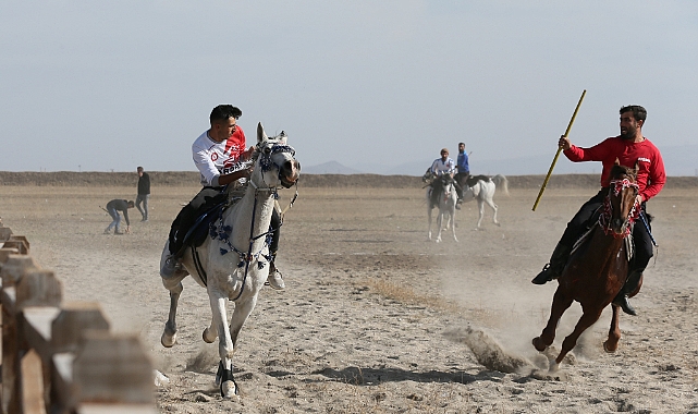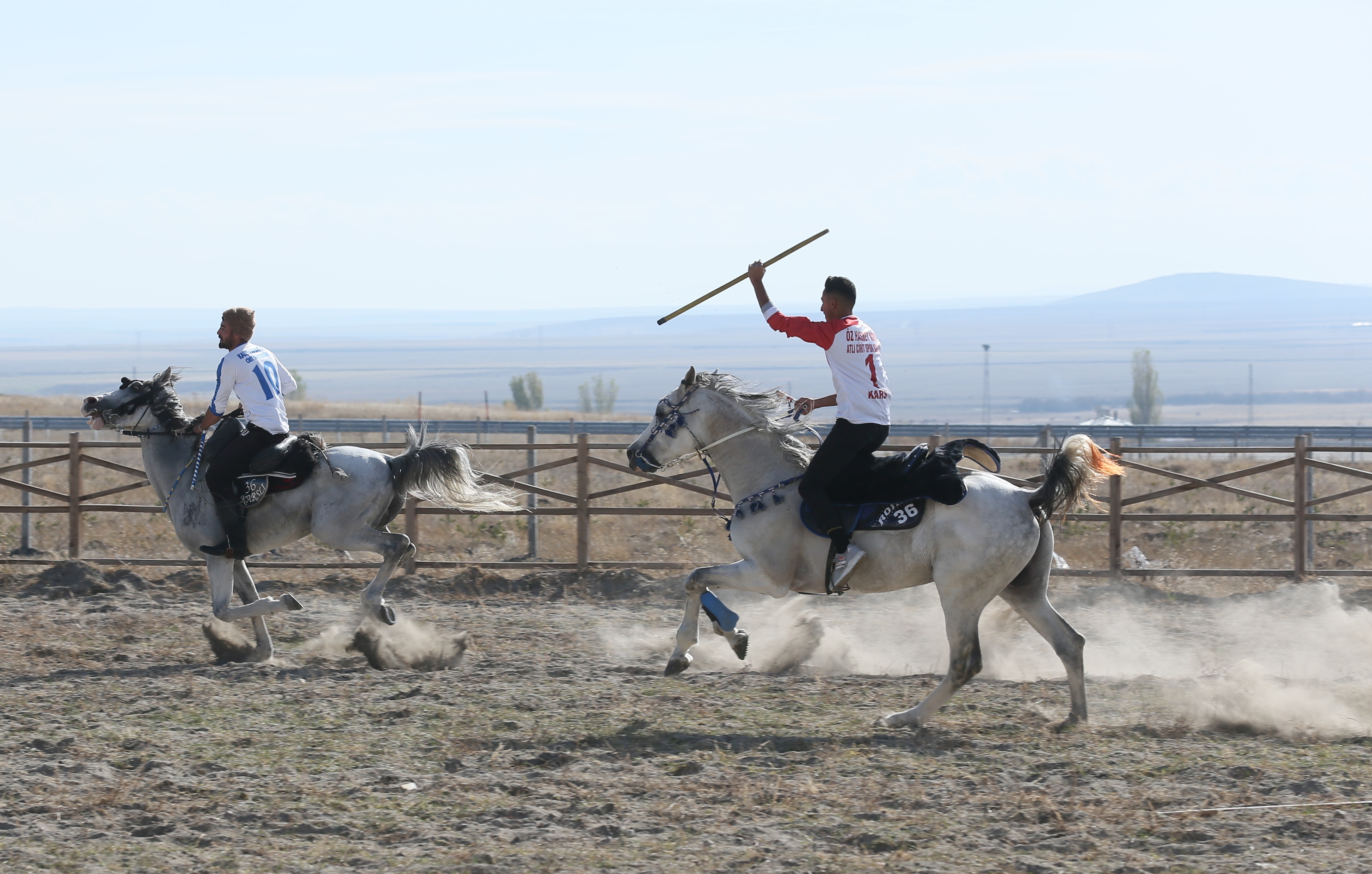 Kars'ınSelim ilçesindeki 23 bin metrekarelik Ata Sporları Turizm Destinasyon Merkezi'nde, Başköy Allahuekber Dağı Atlı Cirit Kulübü ile Öz Hasbey Atlı Spor Kulübü sporcuları dostluk maçında karşılaştı.