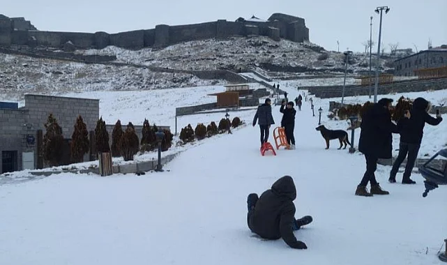 Öte yandan Kars Kalesi eteklerinde kayan çocuklar yorulmalarına rağmen her defasında kızaklarını yokuş yukarı çıkararak kaydı. Gün batımına kadar kayan çocuklar daha sonra evlerinin yolunu tuttu.
