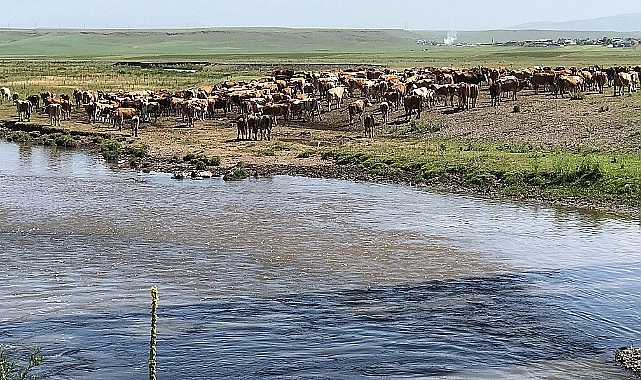 Kars'ta her yaz olduğu gibi bu yıl da çiftçiler, derelerdeki serin sular altında büyükbaş hayvanlarını gözeterek, geleneksel tarım yöntemlerini modern çevre bilinciyle birleştiriyorlar.
