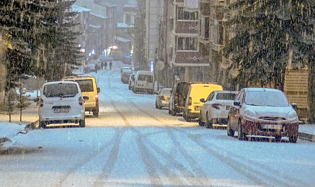 İlçede akşam saatlerinde başlayan kar aralıklarla etkisini artırdı, ilçe kısa sürede beyaza büründü.