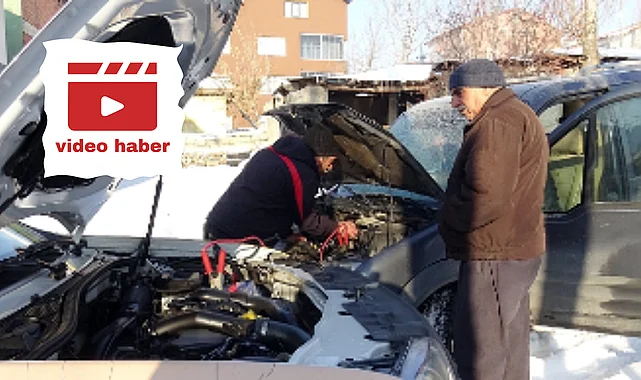Soğuk nedeniyle çalışmayan araçlara akü takviyesi yapıldı. Araç sahiplerinden Ahmet Alkan, soğuk hava nedeniyle akülerin dayanmadığını ve boşaldığını söyledi.