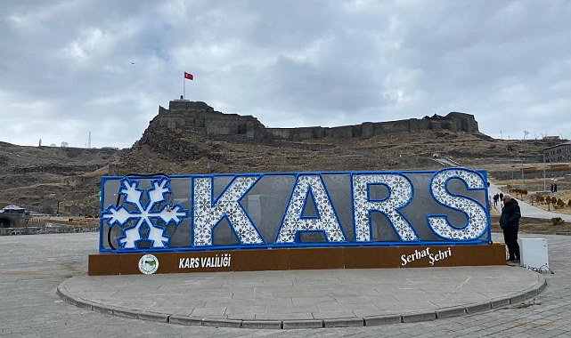 Kars bedesten bölgesinde bulunan Kars yazısı kar tanesi figürü ile yenilendi.