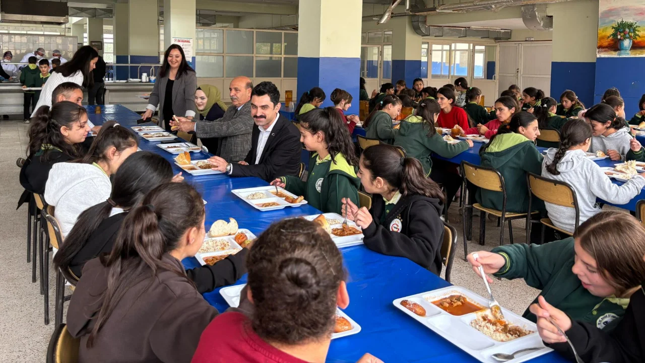 Kars’ın Susuz İlçe Kaymakamı Muhammed Emin Tutal, 75. Yıl Borsa İstanbul Yatılı Bölge Ortaokulunda öğrencilerle birlikte yemek yedi.