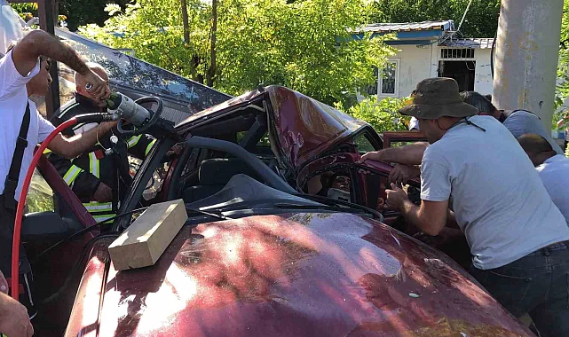 Elazığ'da sürücüsünün direksiyon hakimiyetini kaybetmesi sonucu elektrik direğine çarparak duran otomobilde sıkışan sürücü, itfaiye ekiplerinin 1 saatlik çalışması sonucu sıkıştığı yerden kurtarıldı.