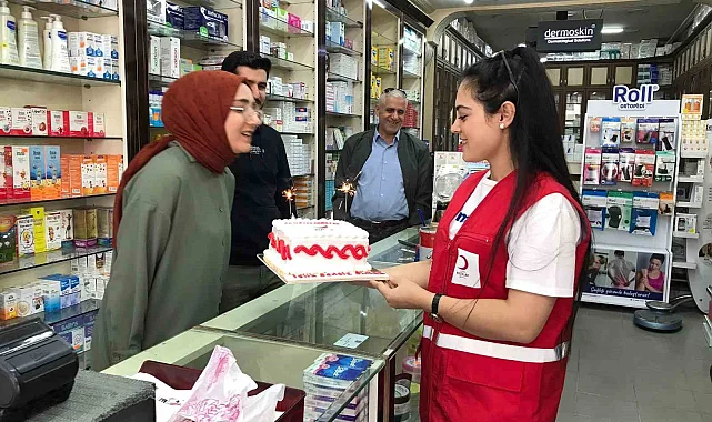 Türk Kızılayı Ağrı Şubesi gönüllüleri Dünya Eczacılar Gününde eczacılara sürpriz yapıp pasta ikramında bulundu.