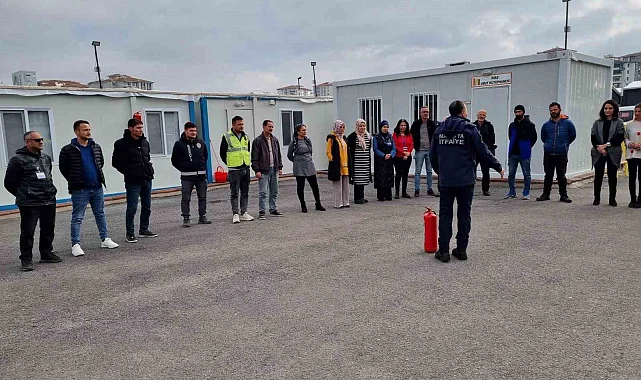 Malatya Büyükşehir Belediyesi İtfaiye Daire Başkanlığı tarafından konteyner kentlerde yaşayan vatandaşlara ve görev alan personellere yönelik yangın eğitimi veriliyor.