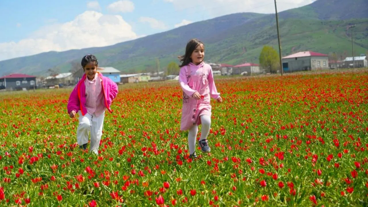 Ortalama 3 hafta canlı kalabilen endemik tür, bahar aylarında Muş Ovası'nın en dikkat çeken doğal zenginlikleri arasında yer alıyor. Kırmızı tonlarıyla ovayı süsleyen laleler, her yıl olduğu gibi bu yıl da görsel şölen sundu.