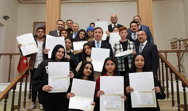Vali Aydoğdu liseli gençleri teşekkür belgesiyle ödüllendirdi.