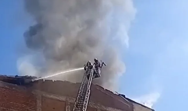 Malatya'nın Battalgazi ilçesinde depremlerde hasar alan bir apartmanın çatısında yangın çıktı. Alevlerin göğe yükseldiği yangın itfaiye tarafından söndürüldü.