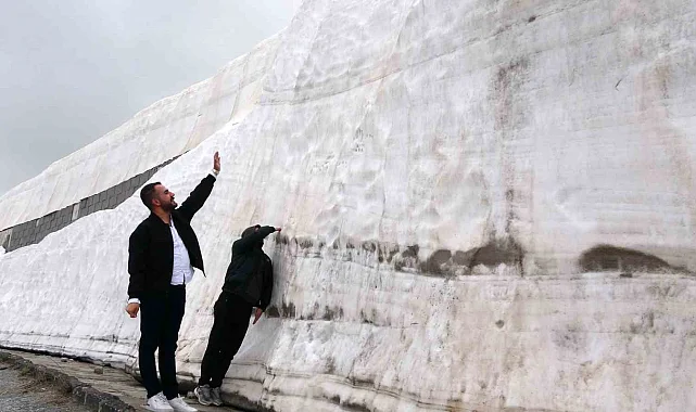 Bitlis'in Tatvan ilçesinin yüksek kesimlerde yer alan 5 metrelik kar kütleleri görenleri hayretler içerisinde bıraktı.
