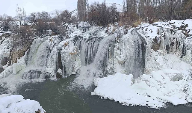 Van'ın Muradiye ilçesi sınırları içerisinde bulunan ve bir kısmı buzla kaplanan Muradiye Şelalesi, kartpostallık görüntülerin ortaya çıkmasına neden oldu.