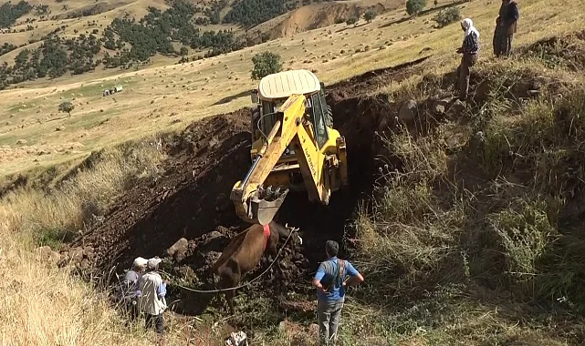 Köy sakinlerinden Eyüp Omur, "İneğinin kayıp olduğunu İbrahim bize haber verdi. Yaptığımız aramalar sonucu köyün aşağı tarafında ineğin dereye düştüğünü fark ettik. Köylüler olarak yaklaşık 7 saat yaptığımız çalışma sonucu ineği düştüğü yerden çıkaramadık. Daha sonra özel idare ekiplerine haber verdik. Ekiplerin yoğun çalışması sonucu kepçe ile ineği çıkarttık. İnek şu anda ayağa kalkamıyor, onun için kepçe ile köye getirdik" dedi.