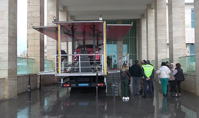 Muş'ta Jandarma Genel Komutanlığı'na ait 'Emniyet Kemeri Simülasyon Aracı'nda vatandaşlara uygulamalı trafik eğitimi verildi.