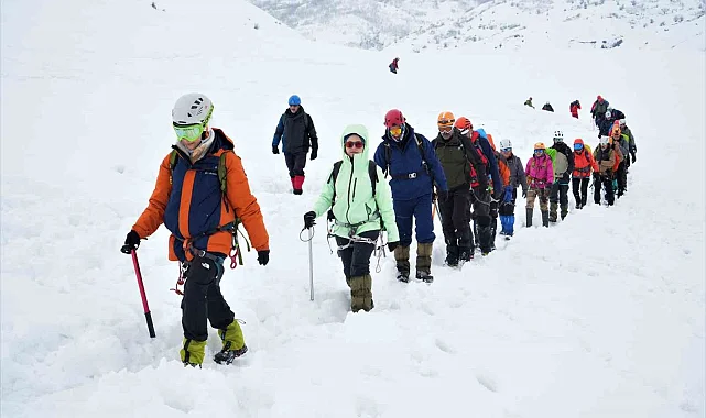Türkiye Dağcılık Federasyonu (TDF) tarafından her kış dönemi Muş'ta düzenlenen "Kış Dağcılık Eğitimi" kapsamında, farklı illerden gelen 105 dağcı zorlu parkurlarda eğitim alıyor.
