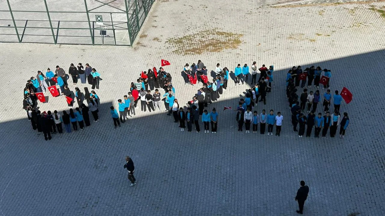 Kars’ta Şehit Albay İbrahim Karaoğlanoğlu Yatılı Bölge Ortaokulu öğrencileri, 07 Ekim 2025 tarihinde anlamlı bir etkinliğe imza attı. Öğrenciler, okul bahçesinde bir araya gelerek “GAZZE” yazısını oluşturdu ve Türk bayraklarıyla dayanışma mesajı verdi.