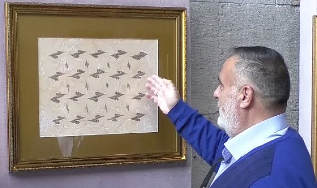 18 yıldır ebru çalışmaları yapan Mehmet Kotan, yıllar önce Oltu taşının ebru sanatında kullanımı ile alakalı düşüncesi olduğunu belirterek, "Oltu taşını ezerek toz haline getirdim. İki mermer arasına tekrar ezdik. Bilinenin aksine Oltu taşı aslında kahverengi bir tona sahiptir. Bu taş hava ile temas edince sertleşir ve siyah rengini alır. Oltu taşını ebruda kullandığımızda kağıtta öz rengini çıkarıyor. Oltu taşımız taş olarak başta tespih olmak üzere usta ellerde birçok ürüne dönüşüyor. Benim ebru çalışmalarımda ilk kez farklı bir formatta görücüye çıkmış oldu. Çifte Minareli Medrese'nin avlusunda eserlerimiz sergilenmektedir" dedi.