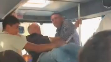 Büyüyen tartışma kavgaya dönüştü. Tekme ve yumrukların havada uçuştuğu kavga, vatandaşların araya girmesiyle sona erdi. O anlar ise bir başka yolcunun cep telefonu kamerasına anbean yansıdı.