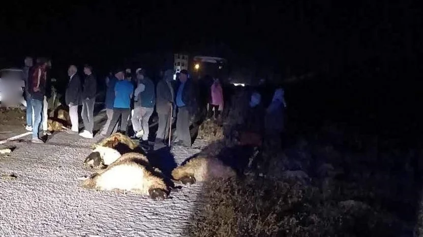 Otomobilin çarptığı 23 koyun telef oldu