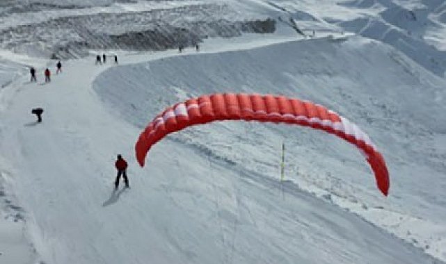 Ülkemizde kış turizminin "parlayan yıldızı" olarak ifade edilen Palandöken Kayak Merkezi, yamaç paraşütü meraklılarına atlayış imkanı sunuyor.