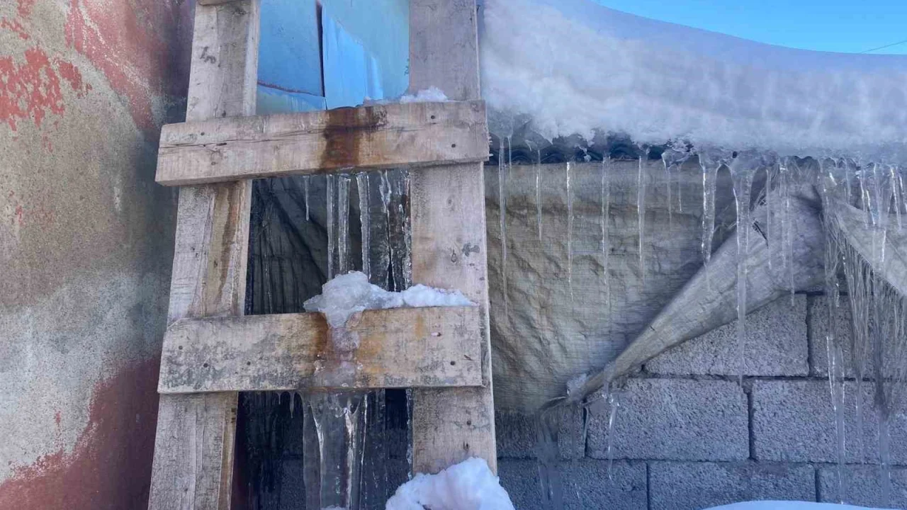 Ağrı’nın Patnos ilçesinde etkili olan kar yağışının ardından don meydana geldi, çatılarda buz sarkıtları oluştu.