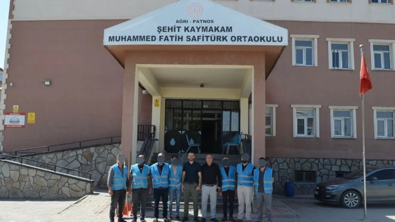 Ağrı’nın Patnos ilçesinde, kamuya yararlı bir işte ücretsiz çalıştırılmaya ilişkin işbirliği protokolü kapsamında yükümlüler, Şehit Kaymakam Muhammed Fatih Safitürk Ortaokulu’nda temizlik ve düzenleme çalışmaları gerçekleştirdi.